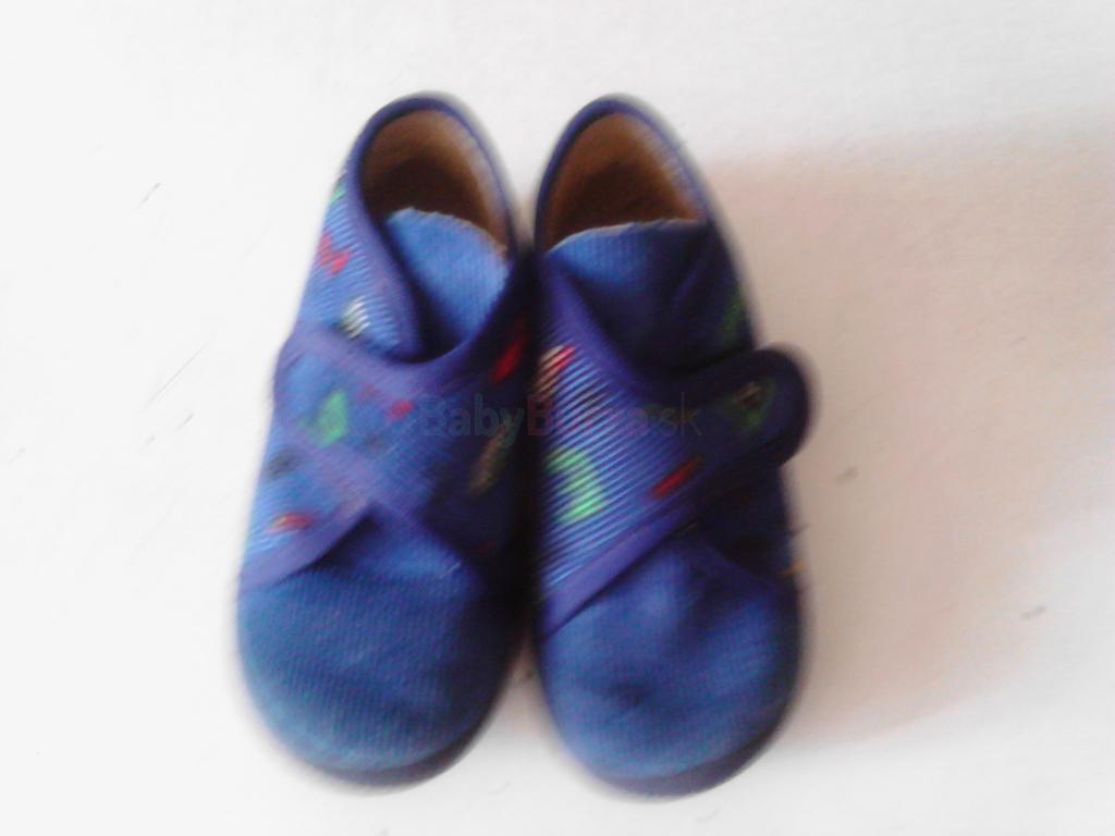 Predám chlapčenské papuče, tmavomodré s motívom, veľkosť 22, suchý zips.